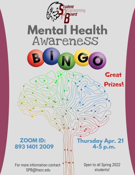 Your Student Programming Board invites you to join the fun and play some Bingo as we learn about mental health! Play 5 rounds for a chance to win a prize. All prizes will be awarded to the winner of each of the 5 rounds.