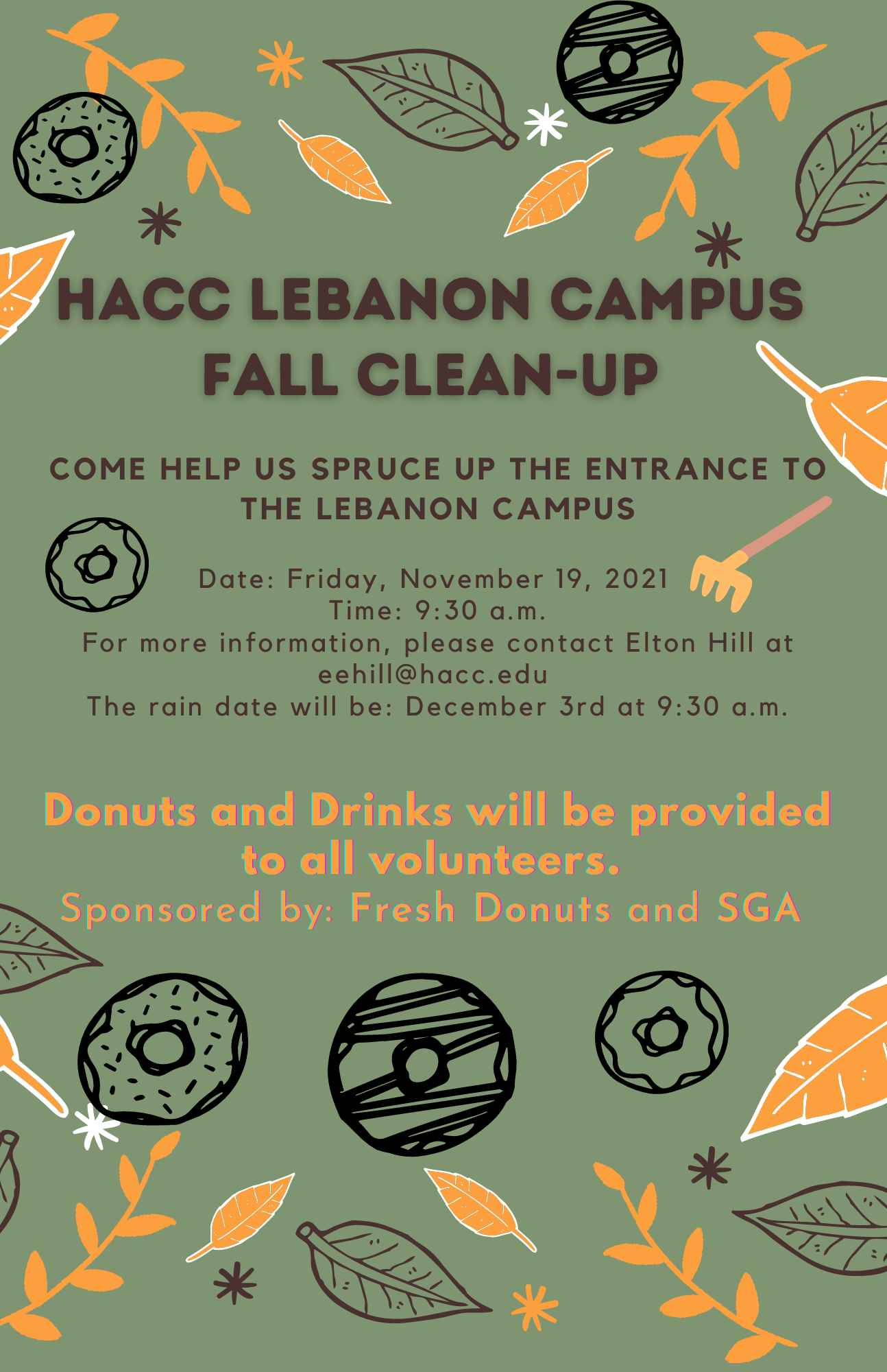 Join the SGA to spruce up the entrance to the HACC Lebanon Campus. Donuts, refreshments, and work gloves will be provided to all volunteers.