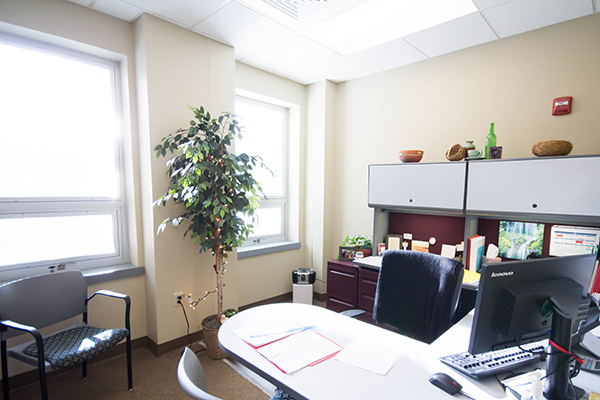 Centrally located inside the entrance to the East building, the offices house most of the campus Leadership Team.